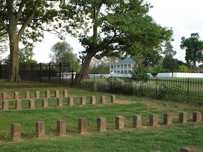 Here are some pictures from Carnton, along with the private cemetery that runs alongside the estate where 1,500 boys who fought in that bloody battle are buried. I say boys because most of them were no older than 16 to 18. Standing on the now tranquil field, it's hard to imagine that over 9,000 souls fought and died in the five terrible hours of battle that took place here--until you walk the graves. Then it becomes very real. And sobering.