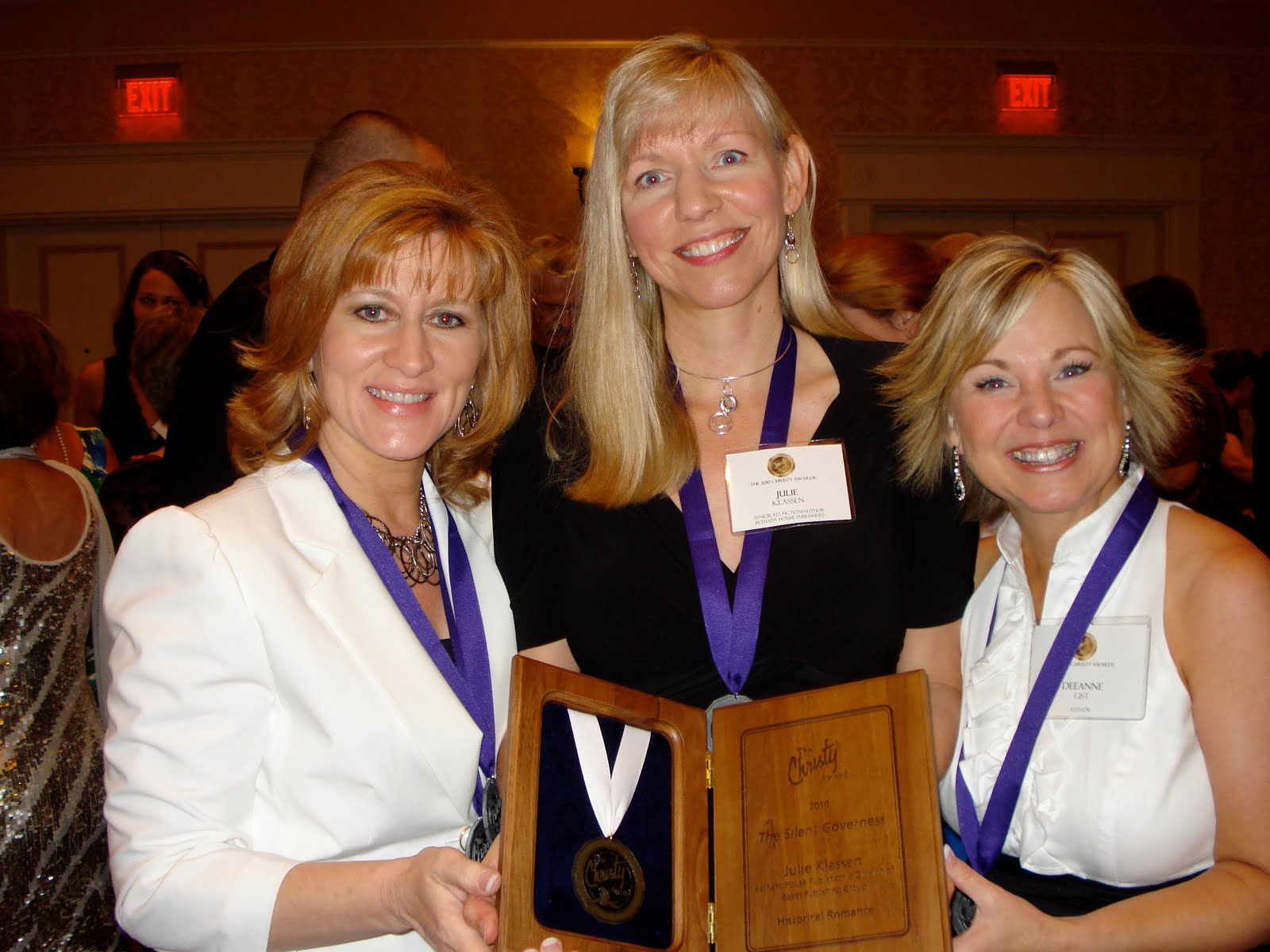Me with Julie Klassen and Dee Gist following the Christys on Saturday night. If you haven't read The Silent Governess yet, treat yourself and do! It's marvelous! So is Dee's A Bride in the Bargain. I'm honored to be among such talented authors.