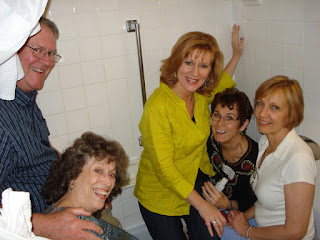 Another feat of the scavenger hunt was to take a picture of your entire team SEATED in a bathtub. (L to R: Ken Blackstock (Terri's husband), Gayle Martin, me on Neta Jackson's lap and Lynn Austin)