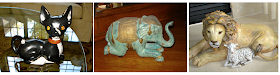 Next is ceramic dog I painted when I was...oh gracious...probably nine or ten years old (so yes, Judy, it's an antique). It's fashioned after Duchess, our sweet little Manchester Terrier we had as I was growing up. Next is an elephant from Jerusalem from Mom and Dad's travels. And lastly is a Lion and a Lamb I picked up some time back.