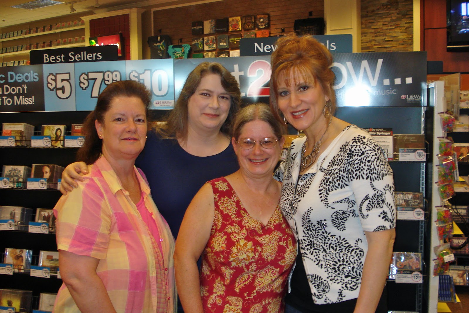 Me with Bonnie (I'm hugging her), and her sisters Venetia and Roz (I first met these lovely gals at a Fayetteville, TN signing a couple years back). Thanks, sweet sisters, for taking the time to reconnect again. I loved seeing you, and am certain our mothers are visiting in heaven.