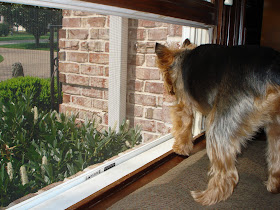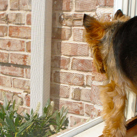 Not sure if you can see the lizard by the downspout (near the bush), but that's all Jack's into now, watching for him to reappear. His excitement for the afternoon. And mine too, I guess. ;)