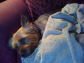 Skip ahead to Saturday (and speaking of Brandilyn's book)… I noticed Jack had a knot on his throat (embedded tick? Ack!), so I asked Kels to take him into the vet. He was due for his vaccinations so the vet administered those and then Jack proceeded to have an adverse reaction to them and spent Saturday and Sunday lethargic with fever, not eating and hardly even moving. Bless him…