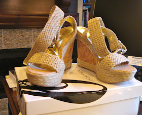 I read her post on her blog that day, looked closer at her shoes and thought, "I could so wear those!" The moment overtook me, I became drunk on shoe envy, and rapturous infatuation swept me away. I purchased those sandals faster than you can say "But how tall are the shoes with the platforms?" (Tsk, tsk, minor details)