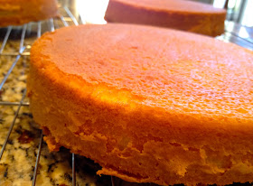 I'd done a little reading on the internet about making a Caramel Cake and everyone said that this stage was the trickiest. And it is...as you'll see by my cake below. But hey, we're friends, right? We can be real with each other? : )