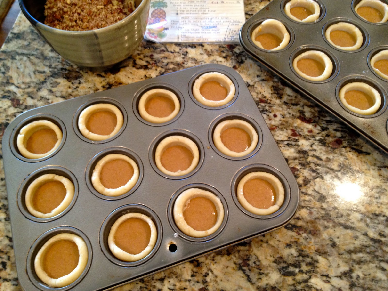 Here we are…ready to bake! I doubled the recipe, btw. One recipe usually makes between 20-24 tassies.