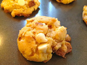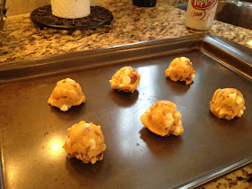 And mix again. Scoop onto lightly greased cookie sheet, bake for 10-12 minutes at 350 degrees, and you're done. It's that simple.