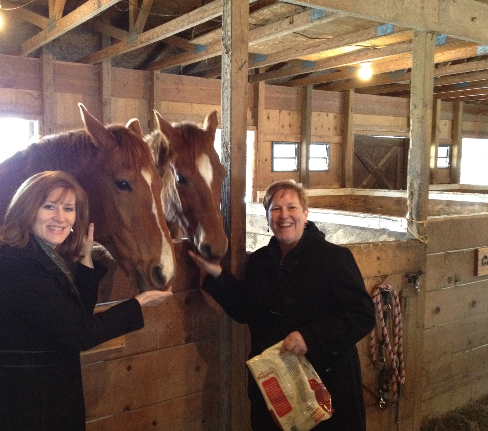 Alicia Mey, the Marketing Director, lives at Dream Acres (don't you love the name!) and has horses on her property. So of course, we had to feed and love on them. I'd forgotten what it feels like to have a horse eat from your hand. A very "nubby" feeling, like they're gumming you to death.