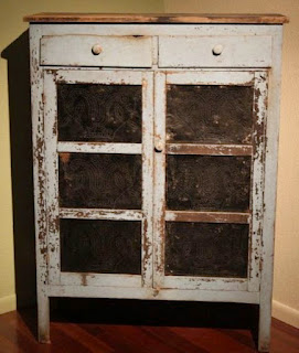 Don't you just love that someone crafted a piece of furniture to keep pies safe? I do. I don't even know them but I love them already. And I wish I had one of these lovely pieces of furniture. The one to the left is a reproduction made by an Amish gentleman. Lovely, huh? Below are pie safes from the 1800s. Be still my beating heart...